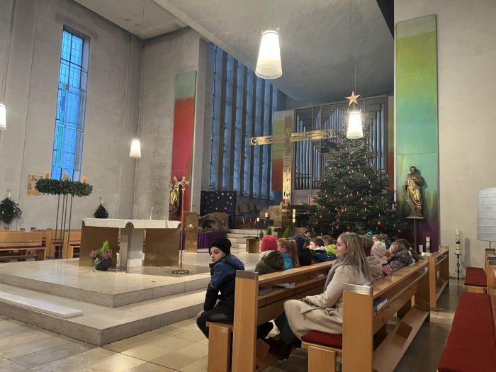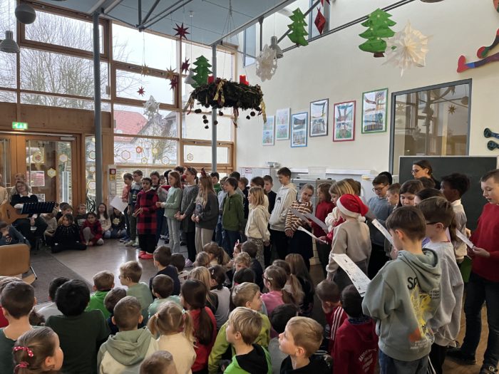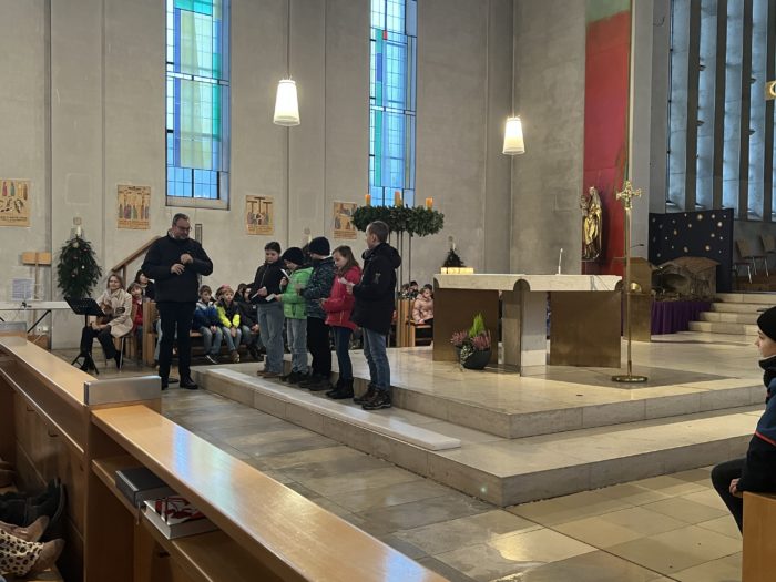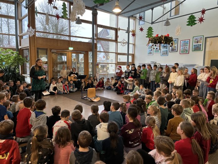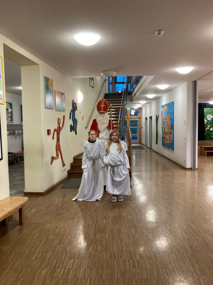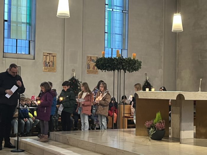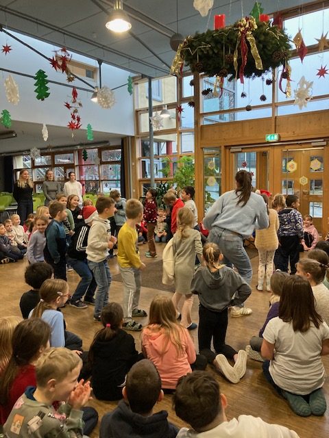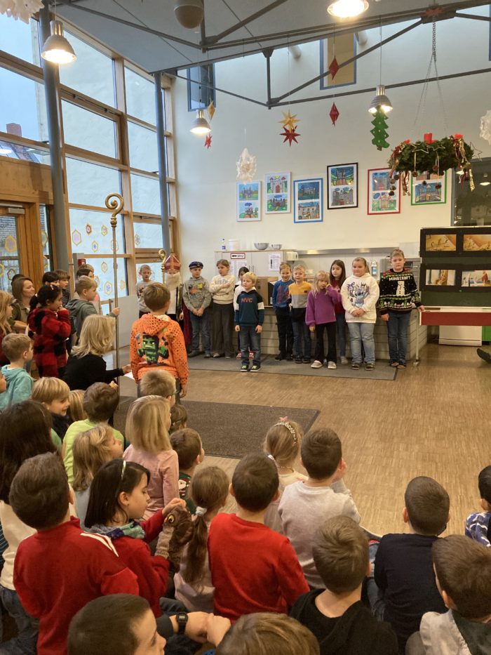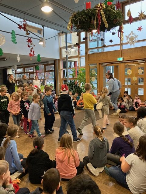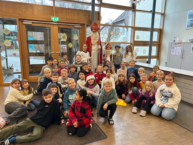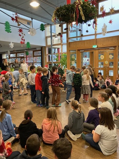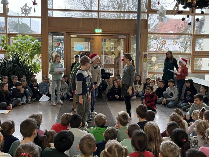 Die Grundschule Schöllnach feierte auch in diesem Jahr im Dezember jeden Montag nach den Adventssonntagen die Ankunft unseres Herrn Jesus Christus in der Aula. Am ersten Montag segnete unser Pfarrer Herr Dr. Haider die Adventskränze für die Klassenzimmer der Kinder. Jede Klassenstufe hatte für die jeweilige Morgenfeier etwas Besonderes vorbereitet. Die Klasse 1a führte einen lustigen Tanz auf und die Klasse 4b spielte ein kleines Theater: Rudolph the rednosed reindeer, ein soziales Stück bei dem man lernen soll, jeden so anzunehmen wie er ist. Zu jeder Feier sangen wir das Lied: Dicke rote Kerzen, Tannenzweigenduft und ein Hauch von Heimlichkeiten liegt jetzt in der Luft. Am 05.12.2025 kam auch der Nikolaus an unsere Schule. Er wurde begleitet von zwei Engeln aus der 4. Klasse. Die 2. Klassen gestalteten für diesen Tag das Programm mit einem Singspiel. Unser sehr engagierter Elternbeirat unterstützte wieder den Nikolaus bei der Organisation der Geschenke für alle Kinder. Herzlichen Dank dafür! Am letzten Tag vor den Weihnachtsferien fand in der Pfarrkirche ein Adventsgottesdienst für unsere Schule statt. Fleißig hatten die Kinder alle Lieder gemeinsam mit der Musikschule Fröhlich einstudiert. Nach dem Gottesdienst gab es Punsch für die Eltern und Kinderpunsch für alle Klassen vom Elternbeirat. Auch dafür herzlichen Dank!